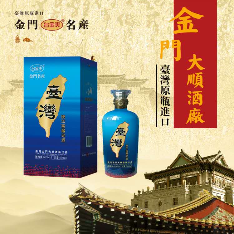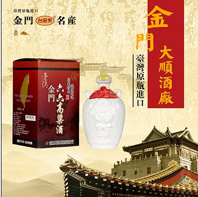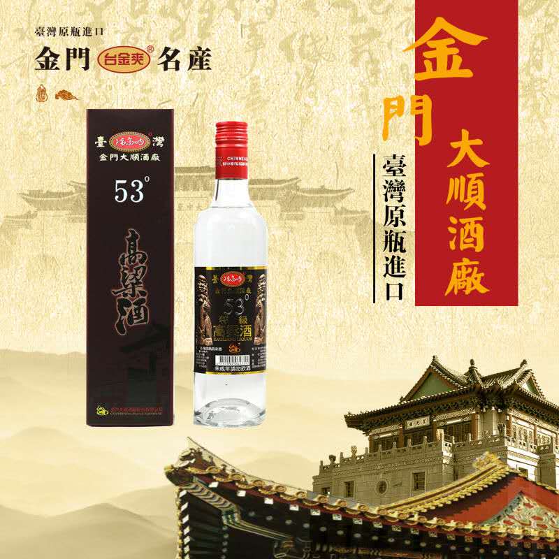 金門大順酒廠,座落于金門北緯24.5度,地處海隅,濱大陸,得天獨(dú)厚的地理,使它擁有絕佳的水質(zhì)、空氣、氣候及原料的四大天然釀酒條件。金門大順酒廠的高粱酒釀造是利用金門特產(chǎn)『旱地高粱』、引用當(dāng)?shù)厮|(zhì)甘甜的泉水、金門潔凈的空氣與氣候條件,并承襲傳統(tǒng)古法之釀酒技術(shù),加上獨(dú)家的釀酒專業(yè)技術(shù)經(jīng)驗(yàn)【三離二鍋一翻】的發(fā)酵釀酒工藝,經(jīng)掐頭去尾后入庫(kù),去蕪存菁。而造就出金門大順酒廠的高粱酒特色「清澈透明、質(zhì)地純凈、芳香濃郁」之一系列高粱酒。金門大順酒廠制酒承襲著金門得天獨(dú)厚的地理環(huán)境,加上三代流傳之古法醇釀技技術(shù),結(jié)合經(jīng)驗(yàn)與現(xiàn)代化生產(chǎn),釀出風(fēng)味獨(dú)特,香、醇、甘、冽的【臺(tái)島】【臺(tái)金爽】【牛樟芝高粱酒】【龍騰鳳舞】【紅雙十】【陳高吶】【臺(tái)灣小酒】等多樣系列產(chǎn)品。真實(shí)原味、清香散發(fā),甘冽醇厚的絕佳風(fēng)味。